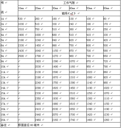 5、磁場參數(shù)表:(供參考)